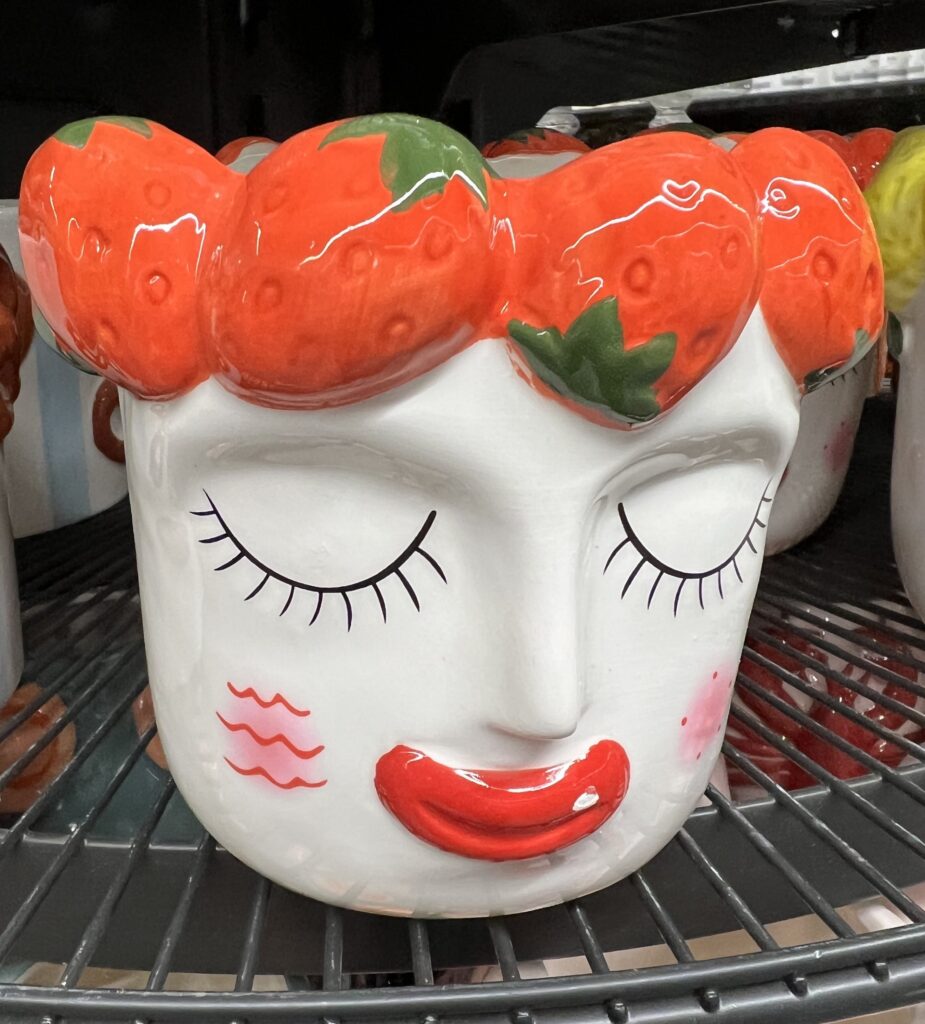 Posude s licem i krunom od jagoda izgledaju kao pravi mali umjetnički komadi. Minimalističke zatvorene oči i naglašene usne daju im neki poseban karakter. Savršene su kao dekor za policu, tegla za cvijet ili pak kao neobičan poklon.