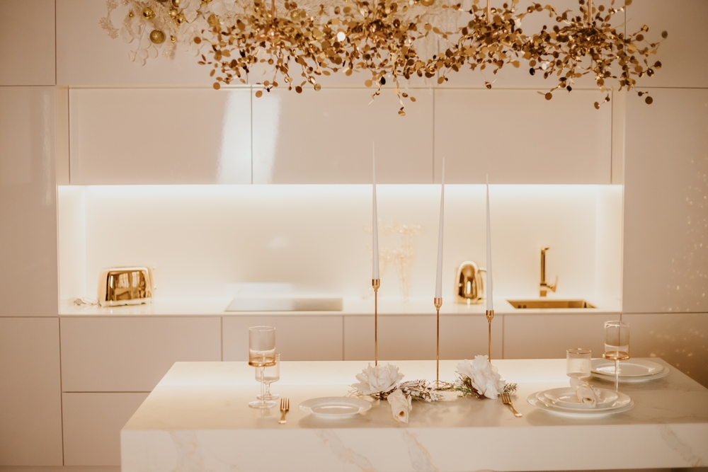 Poigrajte se kontrastima: metalni okvir uz stakleni stol stvara dinamičan efekt, dok staklene police s metalnim detaljima naglašavaju moderni luksuzni izgled. Birajte oblike koji su čisti i minimalistički, ali dopustite jedan ili dva dekorativna komada s detaljima koji privlače pažnju.